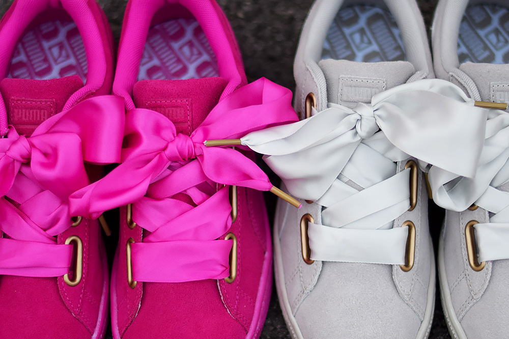 «No, no es amor, lo que tú sientes se llama OBSESIÓN…» Esta frase de una canción (que por cierto no soporto), retumba en mi cabeza desde el momento en el que vi estas zapatillas. Las Puma Basket Heart. Sí, habéis leído bien, ¡unas deportivas! ¿Quién me iba a decir a mí que se me meterían entre ceja y ceja? Si lo único que suele llamar mi atención son los zapatos de tacón. Ya sabéis el dicho «The higher the heel, the closer to God». Pues bien, estas maravillosas Puma lazo (ya que llevan un lazo de satén en el mítico modelo basket), me parecen una forma perfecta de ir cómoda con un toque glamuroso y quizás algo más girly o femenino que con unas deportivas convencionales. Pero por si esto fuera poco, también están las Puma Suede Heart, que hacen lo mismo que con el modelo basket, reinventar su clásico modelo Suede añadiendo un lazo gigante. ¿Puedo morir más de amor?